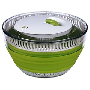 A great thanks to encourage healthy snacking and foster nutritious mealtimes, this versatile salad spinner makes a sensible alternative for on-the-go families, at-home entertaining, and more. The unit's collapsible style permits for tucking it neatly into any drawer, cupboard, or pantry, whereas its updated operate takes the trouble out of meal preparation. To operate, merely fill the expanded 5-quart-capacity drainage basket with freshly washed produce--anything from chopped fruits and vegetables to loose-leaf spinach, lettuce, contemporary herbs, and more. Next, place the basket into the expanded outer bowl and secure the lid. With a firm pull of the self-retracting wire, the basket spins to get rid of excess water, leaving its contents completely cleaned, dried, and prepared to consume. For added convenience, the unit's tight-sealing lid includes an integrated brake that stops the spinning motion with the bit of a button. Dishwasher-safe for thorough cleanup (hand-wash the lid), the salad spinner measures 10-1/2 by 10-1/2 by three inches when collapsed and concerning six inches tall when absolutely expanded.